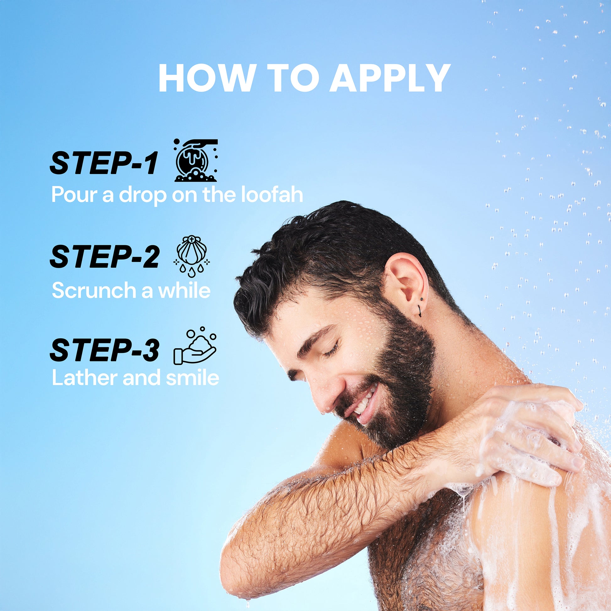 Apply a generous amount to wet skin or a loofah. Lather up and enjoy the calming aroma. Rinse thoroughly.