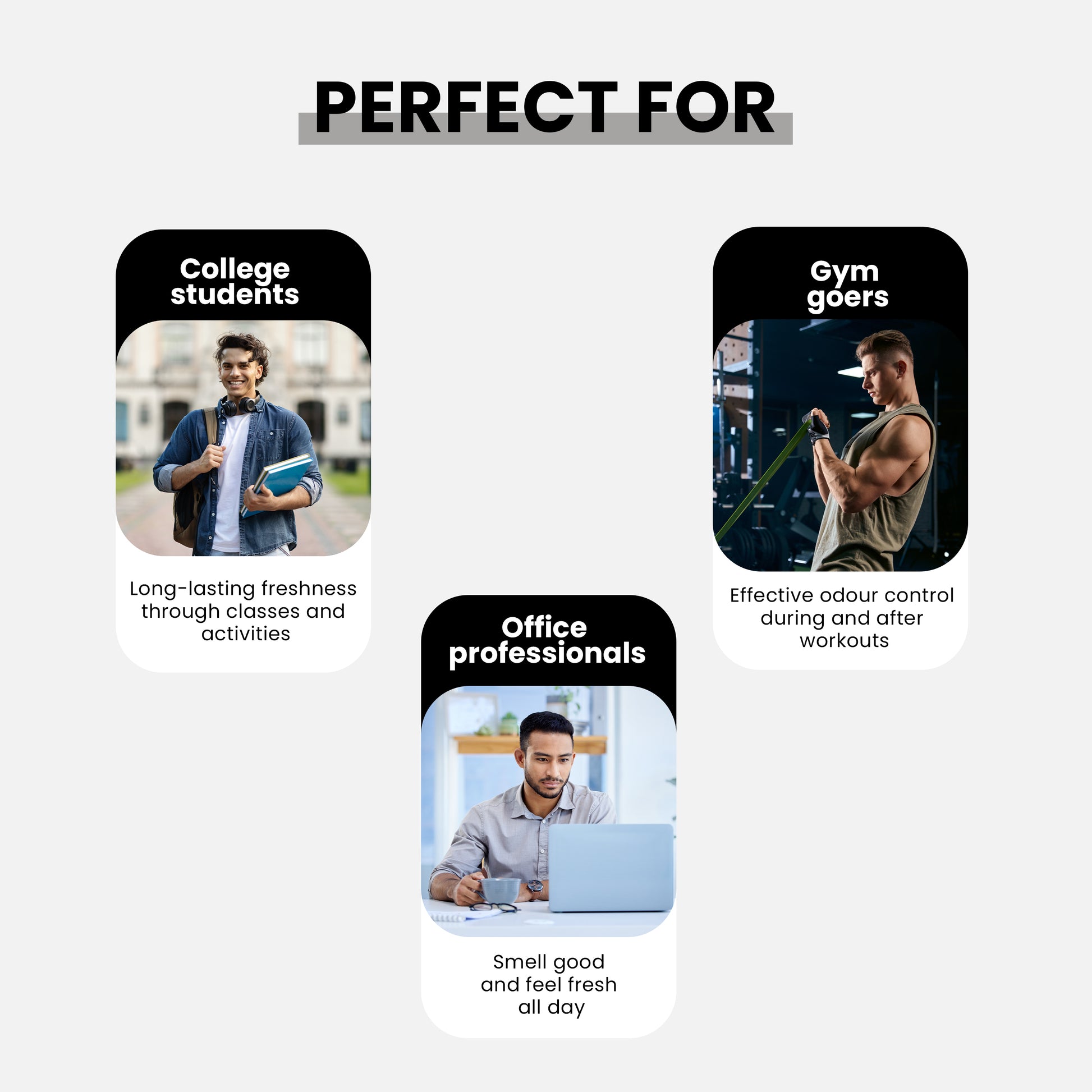 Fights Sweat & Odor: Keeps you fresh and confident even during long, active days.